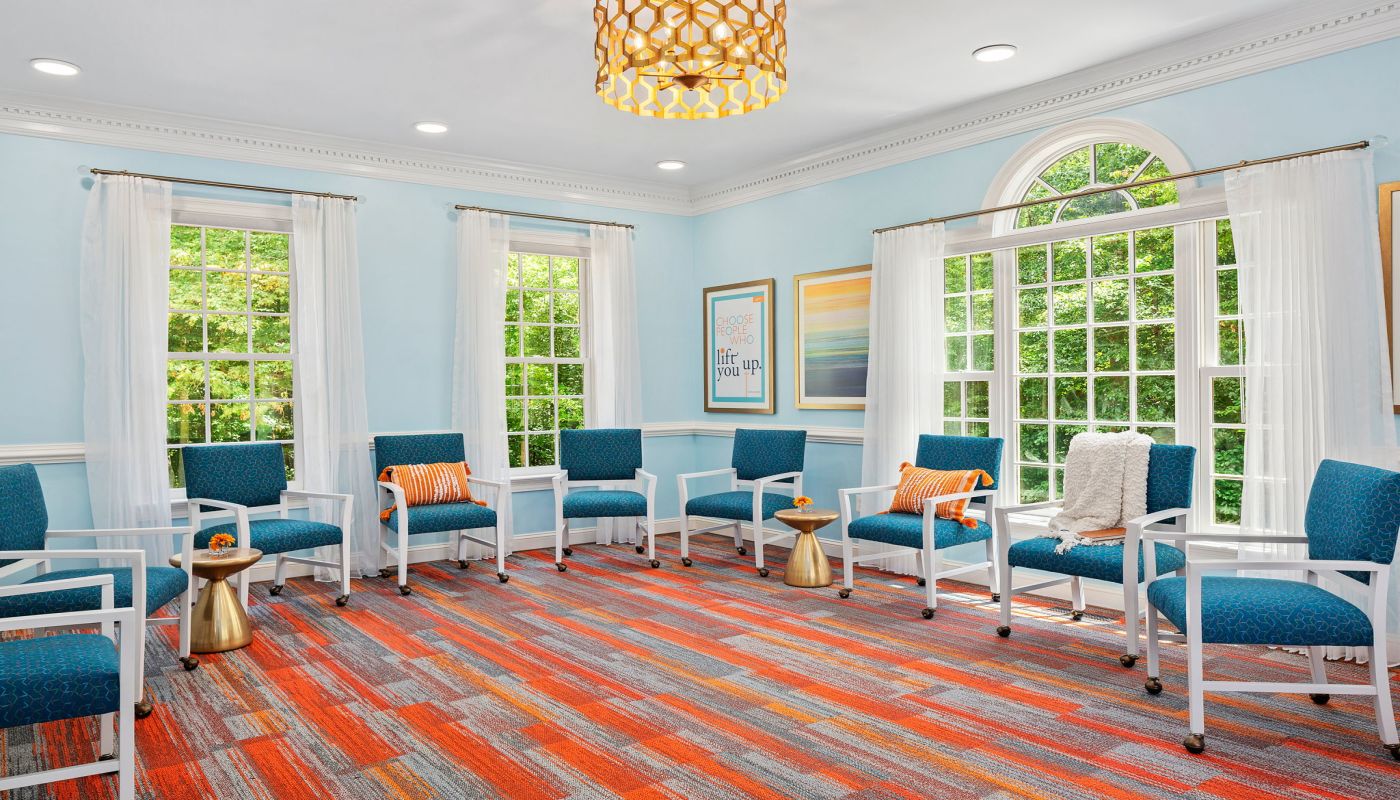 Clementine Fairfax provides residential treatment for adolescent girls ages 13-17 who struggle with anorexia, bulimia, binge eating disorder, and exercise addiction. The center utilizes evidence-based therapies, expressive arts, life skills development, and a family program to promote recovery. Evidence-based methods include 1-on-1 therapy, cognitive behavioral therapy, dialectical behavioral therapy, and life skills training. At the center, clients can practice healthy skills such as journaling, time management, chores, decision making, and handling peer pressure. Additionally, clients’ families can participate in weekly family therapy sessions, a weekly parent education program, family meals, or a multi-family large group. Clementine Fairfax provides academic support and reintegration help for its clients in addition to medical and psychiatric care. They provide their clients with a greater understanding of risks associated with co-occurring disorders, such as substance use, mood disorders, and trauma. Clients and their families also receive personalized meal and exercise plans upon discharge. Clients enjoy a variety of expressive therapies and activities including game and movie nights, free time, pottery, jewelry making, weekly movement sessions, expressive movement therapy, and dance. Additionally, Clementine facilitates outings such as museum visits or bowling and visits to grocery stores and restaurants. The center is located in the Fairfax Station countryside. It boasts colorful interiors, indoor and outdoor lounge spaces, shared rooms, a yoga studio, and an academic center. The center is Joint Commission accredited and works with various public and private insurances.