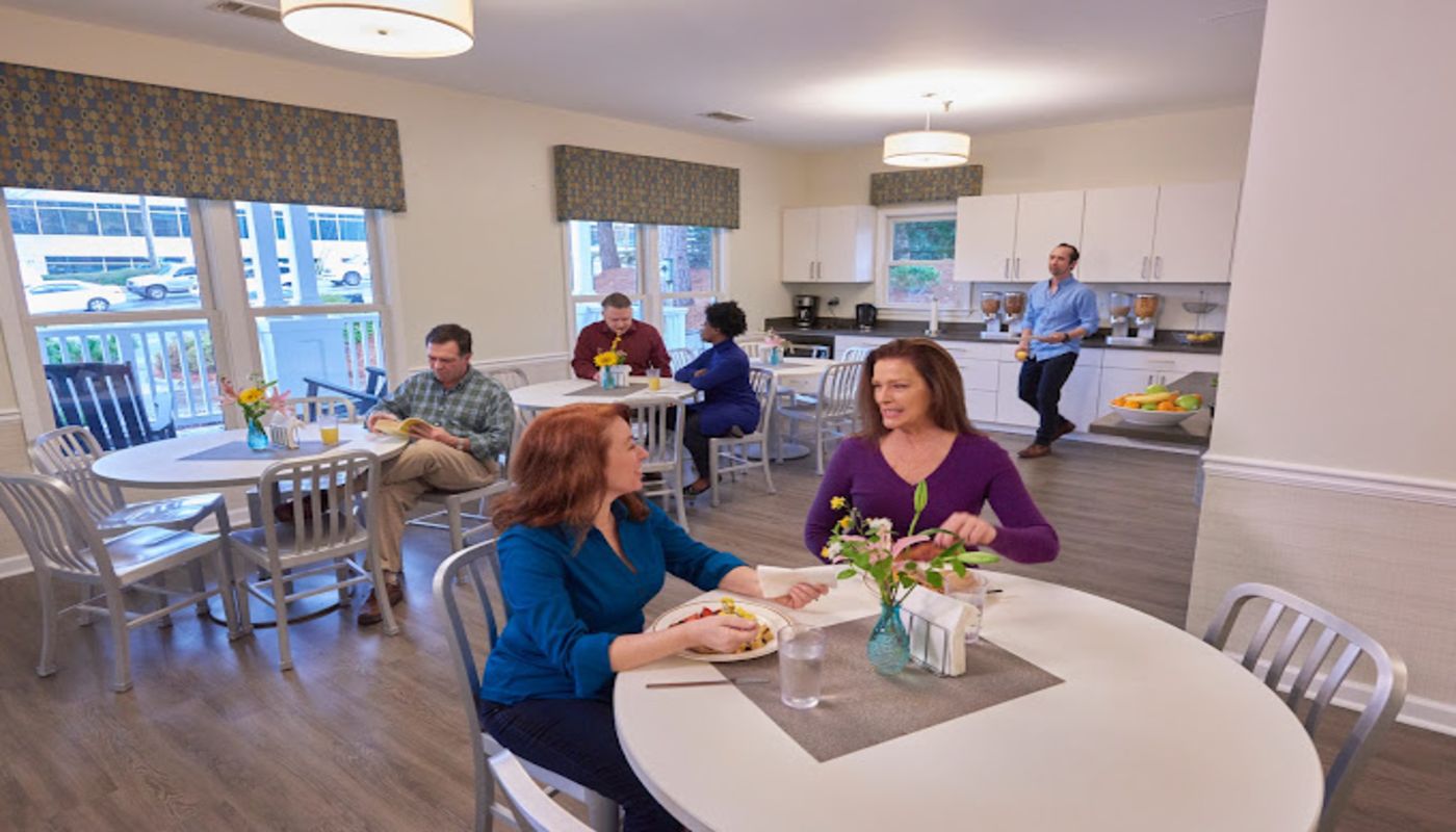 Located in Decatur, Georgia, Skyland Trail South Campus is part of a nationally recognized nonprofit mental health treatment organization. Skyland Trail treats each client as an individual and creates evidence-based, tailored treatment plans that include a holistic approach to care. In a classroom setting, they educate their clients about their mental illness and teach strategies that can be used to prevent relapse and cope with stress. Located near the Atlanta VA and Lullwater Preserve, 8 miles northeast of downtown Atlanta, Skyland South Campus offers residential treatment to clients throughout the Atlanta area. Skyland Trail is in-network with most major private insurance plans and offers financial aid to reduce private pay costs for eligible families. At Skyland Trail South Campus, clients enjoy private rooms and bathrooms. The campus features indoor comfortable dining and lounge areas, naturally lit common spaces, a fitness center, gardens, and a beautiful front porch. Licensed nurses and residential staff are on site 24 hours a day. Each week includes individual sessions with a psychiatrist and therapist, group therapy, skills practice, peer support, personal fitness, and expressive therapies like art, music, and horticulture. Group therapy includes gender-specific and peer-led LGBTQ+ support options. Much of the treatment is held at the Charles B. West Campus, just over 3 miles away. Clients typically stay 8-12 weeks before stepping down to day treatment.